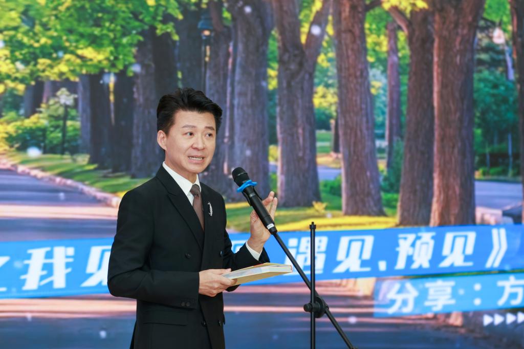 共青團中央閱讀大使、煙臺“最美領讀者”、雅是讀書會創始人方證以《讀書之我見:看見、遇見、預見》為題進行了主題演講。他通過分享自己閱讀《信念》《平凡的世界》《肖申克的救贖》三本書的感悟,闡述了讀書的三重境界——看見世界、遇見人生、預見未來,并勉勵同學們以書為舟,在閱讀中開啟一場跨越時空的文化之旅,遇見更好的自己,創造更美好的未來。