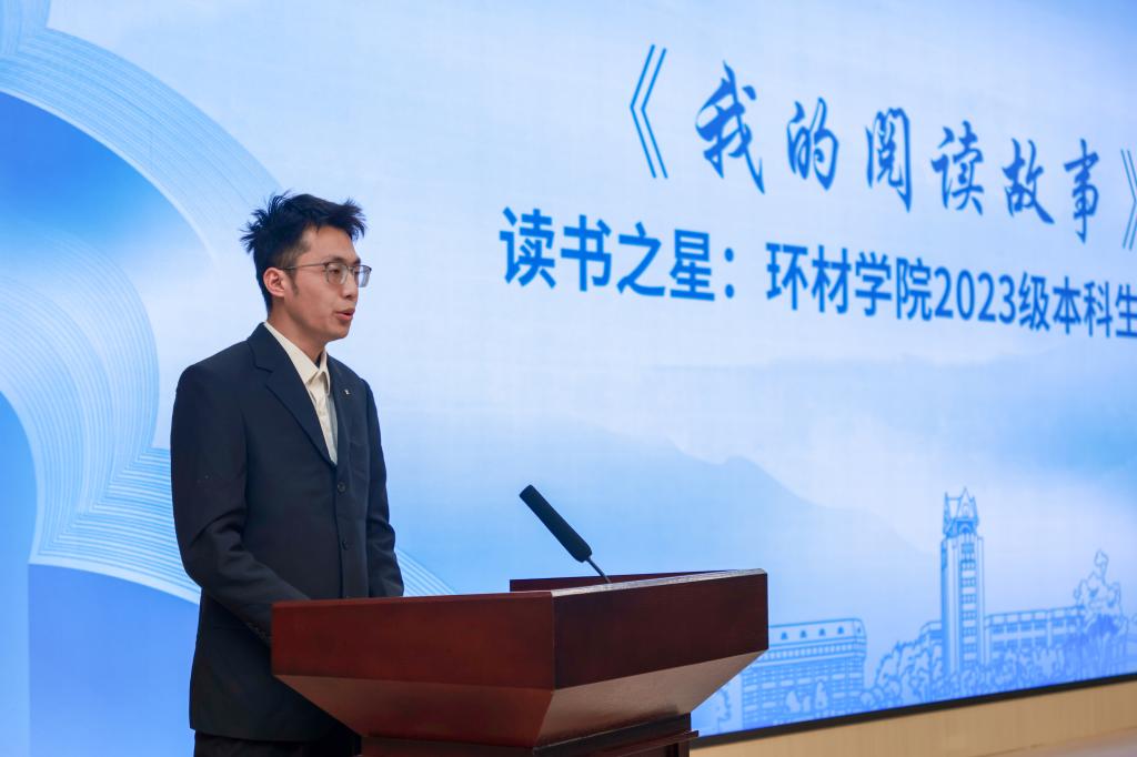 2024年度“讀書之星”——環境與材料工程學院王斌同學以“我的閱讀故事”為題分享了自己的讀書感悟,號召同學們在這個AI都能寫詩的時代保有人類特有的能力,不斷閱讀和思考。