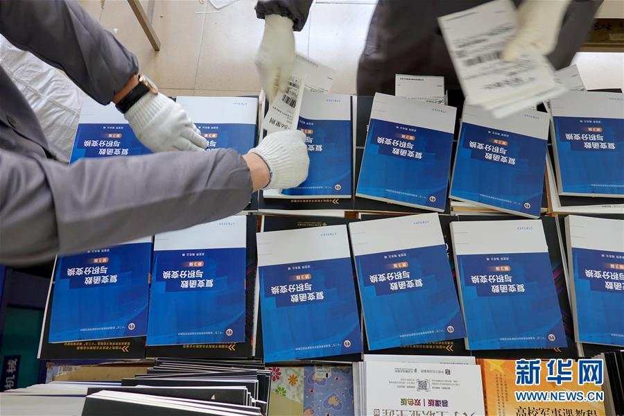 4月30日,在山東煙臺大學教材庫,工作人員在核對教材寄送信息。 連日來,山東煙臺大學與教材供應商和郵政部門密切配合,向1.9萬名學生寄送本學期紙質版教材,以最大限度降低新冠疫情對教學工作帶來的影響,方便學生在線學習和保障線上教學質量。據了解,本次教材總寄送量將達10萬冊,煙臺大學承擔全部郵寄費用。