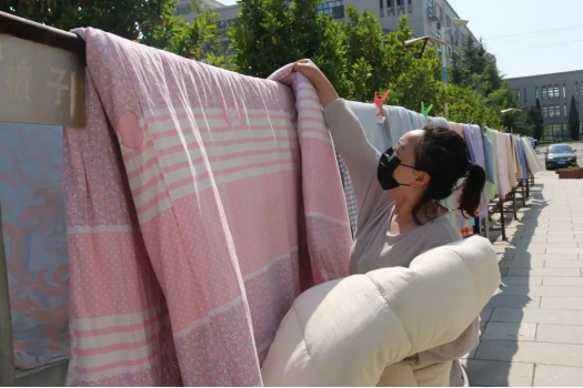 16號學生公寓樓長姚安娜說:“有些學生可能忽略了群信息,遲遲沒有發來曬被子的‘訂單’,我們也都統一進行了晾曬,畢竟被子不潮,孩子們回來后就能睡個好覺?!?/p>