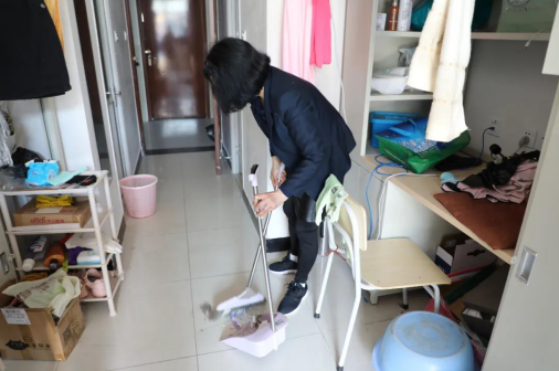 宿管老師幫助打掃學生宿舍衛生