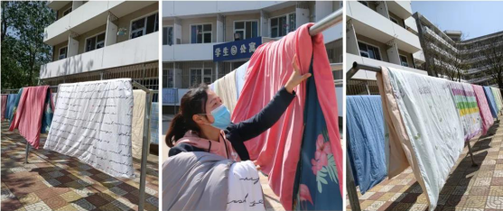 晾曬學生被褥、照料花草