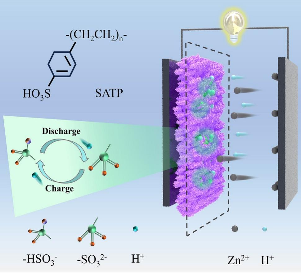 催化領域中的固體酸可以通過固相反應將質子反應限制在固體酸表面。將其與二氧化錳復合,不僅為二氧化錳反應提供質子,還可以將質子反應限制在固體酸和二氧化錳界面,減少電解液質子消耗。近日,環境與材料工程學院姜付義教授團隊在自然指數期刊Advanced Functional Materials(IF:19)上發表題為《Proton Self-Limiting Effect of Solid Acids Boosts Electrochemical Performance of Zinc-ion Batteries》的學術論文。該工作選取了工業催化中常用的固體酸磺酸型聚苯乙烯-二乙烯基苯(SATP),通過一步水熱法合成了SATP/MnO2混合物,并組裝了Zn//SATP/MnO2電池。電化學測試結果表明,SATP的引入顯著提高了鋅錳電池的倍率性能和循環穩定性。通過原位pH、原位X射線粉末衍射、非原位XPS、高分辨透射電子顯微鏡、掃描電子顯微鏡等手段,研究了SATP對二氧化錳反應機制的影響,結果表明,SATP可以作為一種新的質子源,為二氧化錳反應提供和吸收質子,并且將部分質子反應限制在SATP/MnO2界面處,從而提高了放電階段MnO2的溶解、減少堿式硫酸鋅的生成、加快了MnO2的電化學反應動力學。該工作為研發高性能水系Zn-MnO2電池提供了一種新的思路。