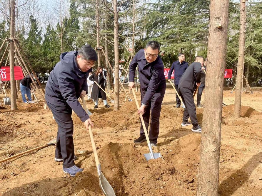 春意盎然、草木蔓發(fā),植樹現(xiàn)場(chǎng)一派熱火朝天的勞動(dòng)景象。大家挽起袖子、揮鍬鏟土、填坑夯苗、提水澆灌,干勁十足。植樹現(xiàn)場(chǎng),忙碌的身影構(gòu)成了一道道靚麗的風(fēng)景線,樹苗在春風(fēng)的吹拂下躍動(dòng)著生命的節(jié)奏。新種下的百余棵中山杉樹錯(cuò)落有致、迎風(fēng)挺立,充滿著勃勃生機(jī)。