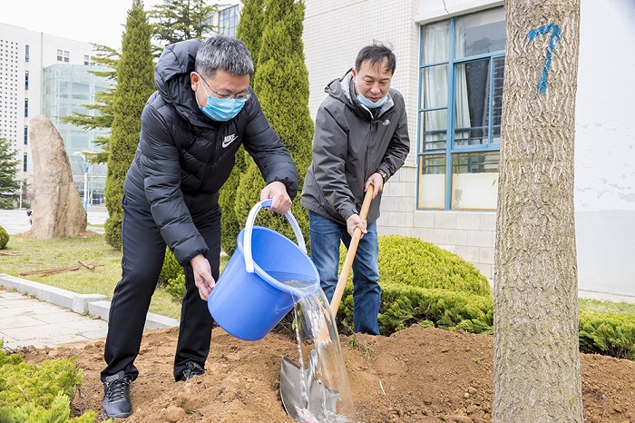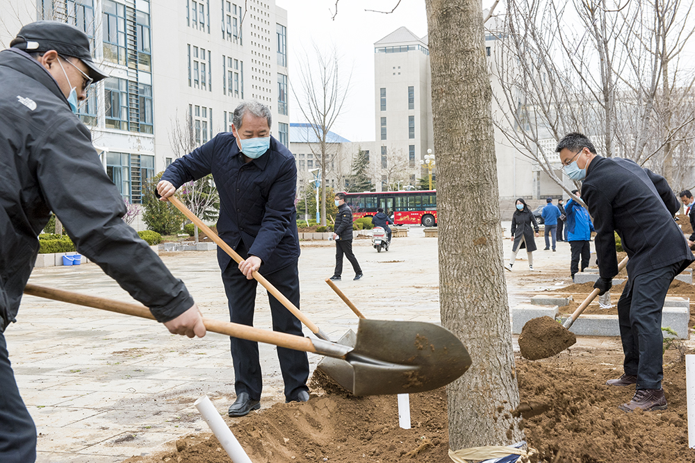 春風吹拂處,新綠綻枝頭。4月9日,學校在綜合樓、逸夫圖書館南廣場開展校園植樹活動。學校領導張偉、孫祥斌、鄧昌亮、宋中民、周勝良、郝曙光、王強與校機關干部、后勤管理處工作人員一起參加了植樹活動,以實際行動播撒綠意,傳遞希望。