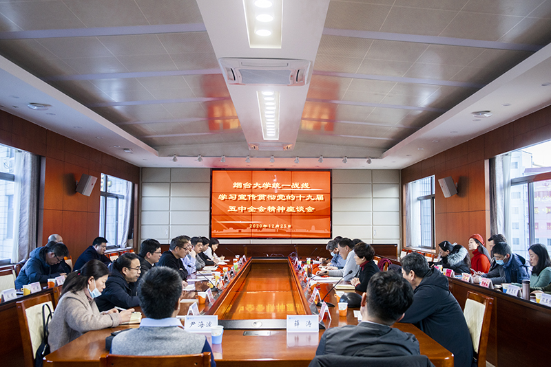 12月25日,煙臺大學統一戰線學習宣傳貫徹黨的十九屆五中全會精神座談會在育秀大樓316舉行。黨委副書記張殿臣主持座談會并講話,各民主黨派、統戰團體負責人,統戰成員代表,黨委統戰部工作人員等近40人參加座談會。