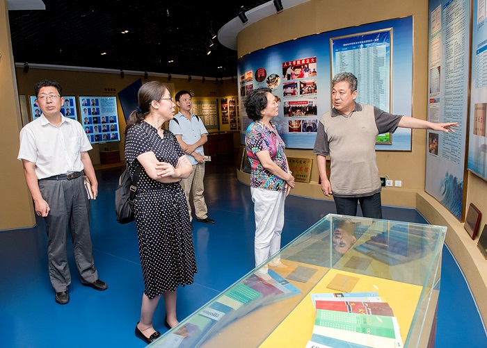 調研期間,副校長孫祥斌陪同孫淑娜、張偉紅一行參觀了學校千米文化藝術長廊和校史館。