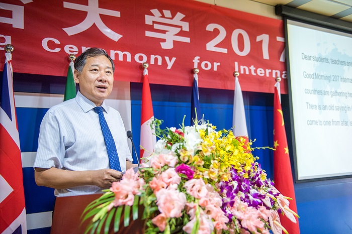 宋中民代表學校全體師生向遠道而來的留學生表示熱烈歡迎。他說,煙臺大學是全國唯一一所由北京大學和清華大學兩所著名學府共同援建而成的高校,學校為全體學生提供了充足均衡的教育資源、素質精良的師資隊伍、豐富多彩的課余活動。學校歷來注重發展國際間的學術交流和友好往來,先后與26個國家和地區的115所院校和學術機構建立了友好合作關系。宋中民向留學生提出三點希望:希望同學們盡快適應學校的學習和生活環境,學好語言,學好專業,取得好成績;希望同學們積極了解中國文化,多與中國學生交流;希望同學們學有所成,成為各國文化交流的使者,為世界和諧發展做出自己的貢獻。