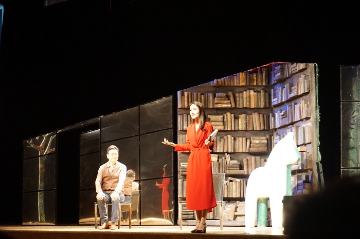 《一雙眼睛兩條河》由國內知名劇作家童道明創作,導演、演員、燈光、服裝等均出自山東省話劇院。該劇講述了“12月5日”子時,一幢普通的居民樓里傳來了莫扎特《安魂曲》的鋼琴聲。彈奏者是年輕的女鋼琴家白露,這天是莫扎特的忌日,她正以這種方式悄悄祭奠著這位偉大的音樂家。然而琴聲擾人清夢,遭到了投訴,卻唯獨引起同樓另一位住戶的注意。這個人叫黃雨,是一位詩歌評論家和研究普希金的學者,他非但沒有怪罪白露,還特地致電表示感謝。于是,兩個孤獨的靈魂,因為莫扎特的音樂而結緣。劇中多次出現莫扎特的《安魂曲》、格林卡的《我記得那美妙的瞬間》、里姆斯基·科薩科夫的《在格魯吉亞的山崗上》,有著舊文人的美感,同時堅守經典和傳統的美感,并保持在美學上的統一性。此劇文學性強,有一種與塵世的間離感,通篇彌漫著淡淡的詩意。