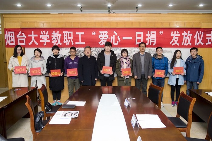 11月16日下午,煙臺大學教職工“愛心一日捐”發放儀式在辦公樓201會議室舉行。副校長孫祥斌出席并講話,校工會、學工部主要負責人,各學院工會主席、教職工代表、受助學生參加發放儀式,發放儀式由學工部部長于秀國主持。