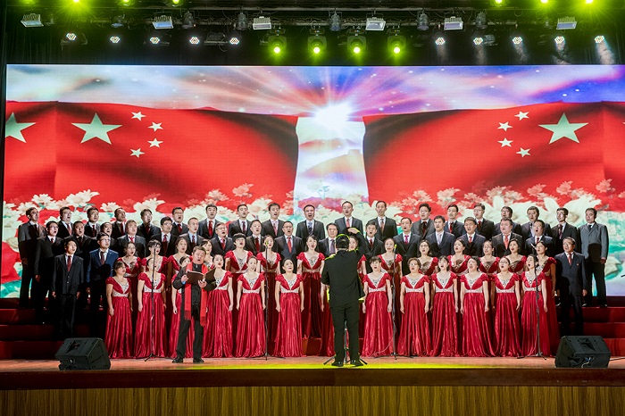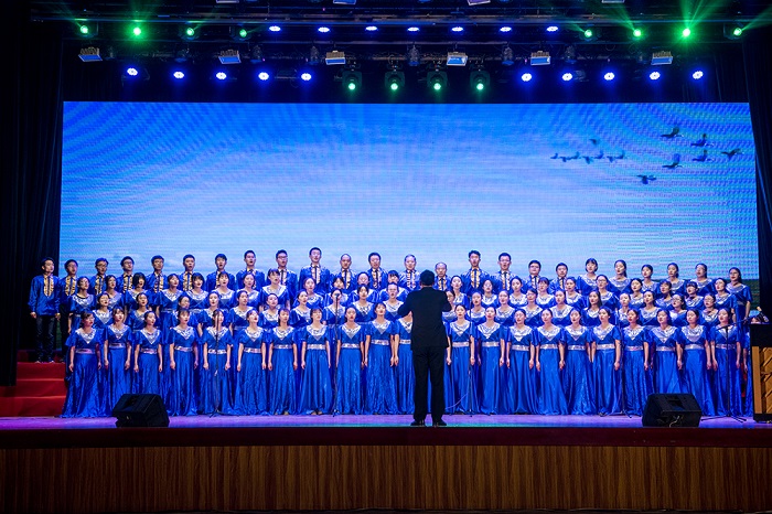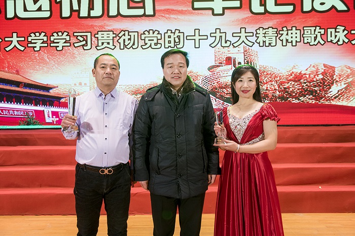 《旗幟頌》《在希望的田野上》《我們走在大路上》《走向復興》《共筑中國夢》《我們從古田再出發》等曲目熱情謳歌了黨的光輝歷程和偉大成就。“站在新起點,長征路更長,我的歌聲伴隨你傳遞八方。你用關注民生實現著幸福小康,你用百花齊放給生活添置彩妝,你用和平友誼送白鴿飛遍寰宇,你用民族復興領我們再創輝煌?!币皇资捉浀涞母枨w現了我校全體師生深入學習宣傳貫徹黨的十九大精神的濃厚氛圍,進一步激勵了各級黨組織和廣大師生堅定理想信念,牢記使命擔當,以實際行動為實現中華民族偉大復興的“中國夢”而努力奮斗。