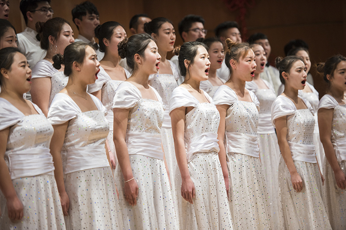 晚會在音樂舞蹈學院合唱團帶來的《四海》《掌聲響起來》中拉開帷幕。琵琶合奏《歡沁》、彈撥樂三重奏《春江花月夜》讓觀眾們感受到了民族樂器演奏的魅力,獨唱《跟你走》《我和我的祖國》《斗牛士之歌》展示了表演者深厚的演唱功底與藝術修養,鋼琴獨奏《波多黎各的回憶》、鋼琴四手聯彈《華麗的半音階加洛普舞曲》帶領觀眾徜徉在美妙的鋼琴旋律中,混聲合唱《十送紅軍》、《VIVA LA MUSICA(音樂萬歲)》贏得現場聽眾的熱烈掌聲。音樂會在音樂舞蹈學院管樂團帶來的管樂合奏中徐徐落下帷幕。