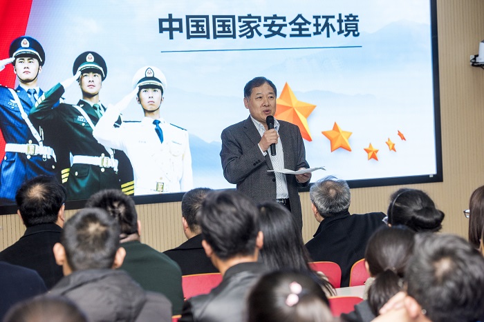 本次見面課的主題是“中國國家安全環境”,朱成虎少將從中國在國家安全所面臨的機遇和挑戰兩大方面展開分析,涉及學生普遍關注的國家地位、經濟與軍事等問題。作為全國共享的“超級慕課”,此次直播課程除我校200余名學生到現場聆聽,還與南開大學、四川大學、河南中醫藥大學學生進行遠程直播互動交流,吸引全國230余所高校20余萬大學生在線學習,最高在線觀看人數達50余萬。同學們認真聆聽,踴躍提問,朱成虎少將一一予以解答,授課現場異常火爆。