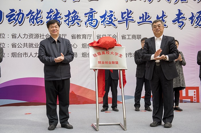 山東省公共就業人才服務中心副主任金魯峰,煙臺市政府副秘書長馬淑臣,煙臺大學黨委常委、副校長鄧昌亮,山東省公共就業和人才服務中心就業服務處處長董廷杰,山東省總工會權益保障部部長李東風,山東省教育廳學生處副處長任永紅,山東省工商聯經濟處副處長楊青山,煙臺市人力資源和社會保障局副局長于騰出席啟動儀式,儀式由山東省公共就業人才服務中心市場處處長史連啟主持。省、市有關職能部門負責人、聯盟高校就業工作負責人、20家招聘企業代表、畢業生輔導員和300名學生參加。
