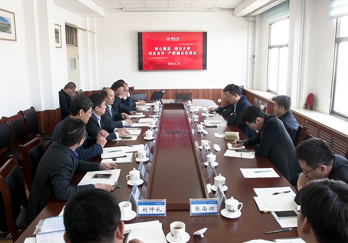 4月19日上午,南山集團技術中心執行主任、南山科學技術研究院院長潘峰、南山科學技術研究院副院長李建榮、南山集團技術中心副主任隋信增一行來我校進行合作洽談。校領導孫祥斌、郝曙光和學校辦公室、服務地方辦公室、社科(科技)處、研究生處、部分學院負責人參加座談。