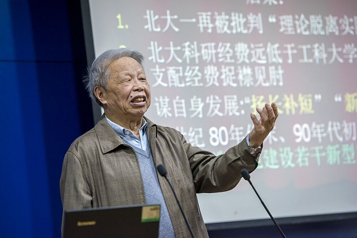 王義遒教授首先從“新工科”的“五個新”即:工程教育的新理念,學(xué)科專業(yè)的新結(jié)構(gòu),人才培養(yǎng)的新模式,教育教學(xué)的新質(zhì)量和分類發(fā)展的新體系講解了“新工科何以為‘新’”;然后從上世紀(jì)北京大學(xué)建設(shè)新型工科的早期嘗試、從應(yīng)用型理科及“新工科”的區(qū)別與聯(lián)系指出了“新工科”建設(shè)中可能出現(xiàn)的一些難題及其化解的路子;最后王教授從“融合--新工科的教育實踐層面”、 從未來需要創(chuàng)造需求方面,暢談了個人對新經(jīng)濟(jì)的理解及對“新工科”未來發(fā)展的瞻望和思考。