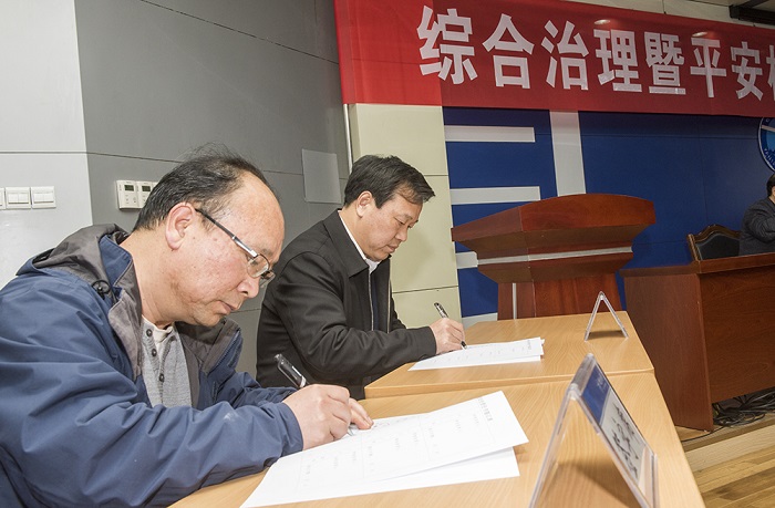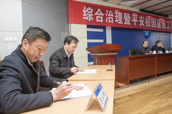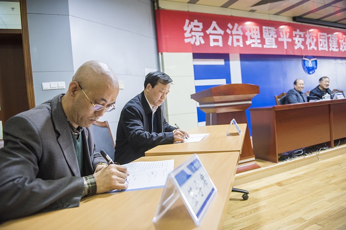 校長郭善利代表學校與各單位黨政負責人分別簽署了《煙臺大學校園管理綜合治理暨“平安校園”建設責任書》《煙臺大學消防安全責任書》。副校長王強對即將實施的《煙臺大學消防安全管理暫行辦法(試行)》從制定的背景和主要內容進行了說明,對《暫行辦法》的落實提出了具體的要求;對啟動“2018平安校園建設提升年”活動作了動員部署。
