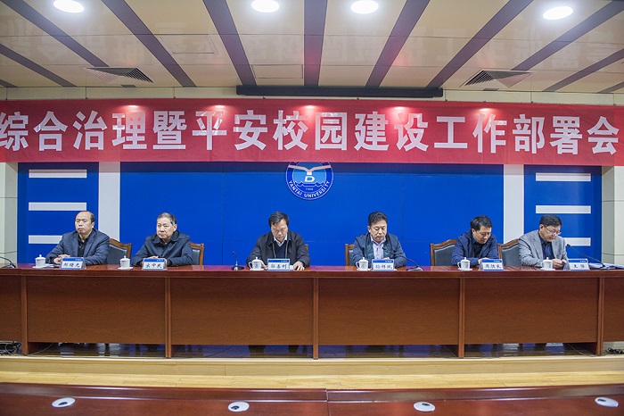 郭善利就近期學校安全穩定工作進行了分析和總結,對學校下一步安全穩定工作提出了要求。郭善利指出,安全穩定環境對國家對學校都十分重要,學校目前正處于落實“一二三”戰略部署爬坡過坎的關鍵時期,更需要安全穩定和諧的環境。高校安全穩定工作任務艱巨,我校同樣存在著消防安全、生產安全、飲食衛生、交通安全、宿舍安全、個人極端事件、網絡輿情等安全隱患,需要采取切實有效的措施加以解決。各級干部要提高政治站位,堅決服從大局,看好自己的門,管好自己的人,干好我們自己的事,認真做好特殊時期的安全穩定工作,進一步樹立紅線意識。當前,維穩工作是重中之重,是我們的政治責任,各單位要立即全面排查各類安全隱患,做到“橫到邊、豎到底、無死角”,要關心師生的心理健康,注重意識形態安全問題和校園反恐,緊緊圍繞加強學生安全等方面的工作常抓不懈,同時要加強學校教師師德師范的教育引導,建立全員責任體系,堅持黨政同責、一崗雙責,要劃分好責任區,切實履行好各自的職責。就做好安全穩定工作,郭善利強調:全校要立即行動起來,開展校園安全隱患排查專項整治行動;強化意識形態安全,認真落實意識形態責任制;做好重要節點的安全穩定工作,特別是“五一”期間的安全穩定工作。全體干部要提高政治站位,嚴格履行職責,堅持黨政同責、一崗雙責的要求把安全穩定的各項工作做實做細。
