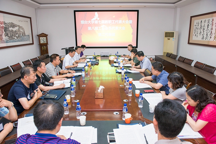 會議聽取并審議了校長郭善利代表學校所作的工作報告、校工會主席何世新所作的工會工作報告、財務處處長楊眾暉所作的財務工作報告。會議審議并表決通過《煙臺大學績效工資實施意見(試行)》《煙臺大學教職工申訴處理辦法》《煙臺大學教職工代表大會實施辦法》。會議選舉產生煙臺大學第七屆教代會執行委員會、第八屆工會委員會及工會經費審查委員會。