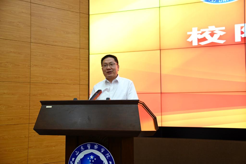 劉福宏對段培永一行的到訪表示熱烈歡迎,并簡要介紹了山東警察學院的歷史沿革、優勢學科專業以及學校特色等情況。他指出,兩校地緣相近,都形成了比較鮮明的辦學特色,多年來雙方在黨建合作、人才培養、人事制度改革、干部掛職等諸多領域都有著很多的交流與合作,結下了深厚的友誼。劉福宏表示,雖然雙方辦學方向各不相同,但在辦學理念、發展思路上有著許多共同之處,期待今后進一步加強交流合作,互通有無,互學互鑒,在科研合作與技術服務、人才培養與培訓、共建平臺與交流以及項目研究等方面加強務實合作,共同提升兩校辦學水平。