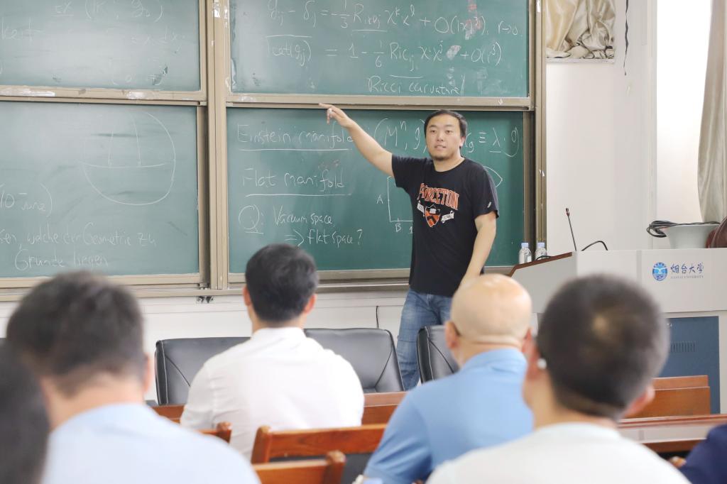 他說,“上學時,我在數(shù)學院修讀了大量專業(yè)課程,還經(jīng)常去‘蹭’研究生師哥師姐的課,老師們都非常歡迎。”十余年過去,煙大因材施教的教育理念、自由討論的學術氛圍、甘坐冷板凳的求真態(tài)度,仍讓張若冰感慨頗深。他還能一口說出當時老師們開設的課程名稱,“張小霞老師作為領域?qū)<议_設的《泛函分析》、朱用文老師的特色研究生課程《抽象代數(shù)》和《代數(shù)拓撲》……這些課程都對我影響很深。在研究生討論班上,算子代數(shù)和微分流形上的幾何,讓我對現(xiàn)代幾何逐漸形成了興趣,并成為我基礎數(shù)學研究道路的啟蒙。”談及在煙大的求學時光,他眼神明亮,語調(diào)變得高昂,“我到其他學校做交流時都會提及,我是從煙大走出去的,是煙大培養(yǎng)了我,我對母校一直心懷感恩。”