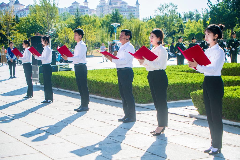 五星紅旗迎風飄揚,莊嚴的國歌在耳邊陣陣回蕩,作為中國人的自豪感油然而生。優秀學生代表、來自數學與信息科學學院的趙月和生命科學學院張嘉怡同學在國旗下進行主題演講。爭做理想遠大、信念堅定的煙大新青年;爭做刻苦學習、銳意創新的煙大新青年;爭做艱苦奮斗、無私奉獻的煙大新青年。以青春之名,向偉大祖國致以最誠摯的祝愿!抒發了每一位煙大青年立志在鐘靈毓秀的煙園中、在意氣風發的歲月里,以時不我待的奮斗之姿,立報國志、走勤學路、攀萬丈峰,在積極投身強國建設、民族復興偉業中綻放青春光彩的堅定決心!