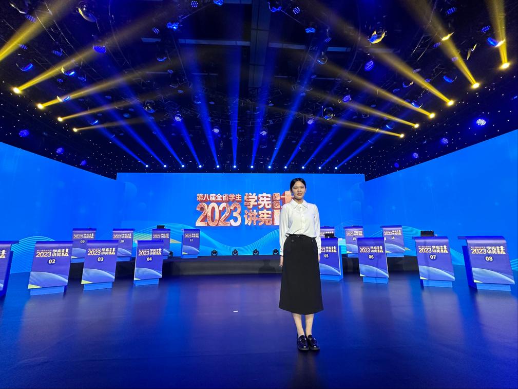 “學憲法 講憲法”演講比賽首輪,趙婉婷以《科技自強振人心,憲法引領強國夢》為主題展開演講。她以華為突破技術封鎖為例,講述憲法如何為國家自主創新能力發展保駕護航,以大方穩健的臺風、新穎獨特的演講視角順利挺進決賽。決賽的比賽形式為即興演講,趙婉婷以杭州亞運會所展現的各種科技發展新成果作為切入點,以靈動活潑的語言闡發了自己的觀點,最終獲得山東省“學憲法 講憲法”演講比賽亞軍。