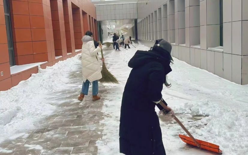 風雪雖大,但學校各部門、各學院師生員工積極響應學校號召,以“包片劃區”形式做好分工,用實際行動為師生做實事,充分發揮黨員先鋒模范帶頭作用。他們利用課余、工作之余時間,挽起袖子,手持鐵鍬、掃帚,迎著寒風、踏著積雪,齊心協力將一條又一條道路的積雪清除。特里爾可持續發展技術學院本科生唐世煜說:“這次掃雪活動不僅是一次簡單的勞動,在這個過程中,我感受到寶貴的團隊精神在我們的共同努力清掃下,學校道路逐漸變得干凈整潔,這讓我特別有成就感。”