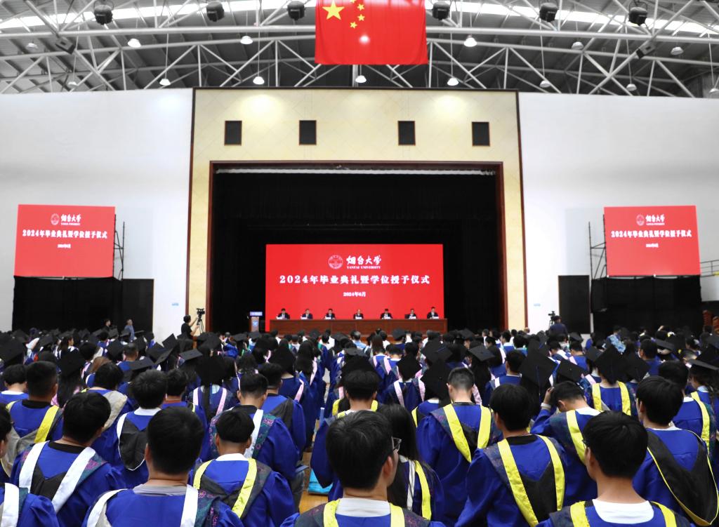 【本站訊】盛夏煙園花開,青春載夢遠航。6月21日上午,煙臺大學2024年研究生畢業典禮在主校區大學生活動中心隆重舉行。學校領導郝曙光、王強、白青、姚昌、初磊、劉偉、王洪波出席典禮。校學位評定委員會委員、機關各部門負責人、各學院黨政主要負責人、研究生導師代表、研究生秘書、研究生輔導員、學生家長代表共同到場見證這一珍貴時刻。1100余名2024屆博士研究生、碩士研究生即將帶著在煙大這片熱土上茁壯成長的青春夢想,奔赴更加廣闊的天地山海,書寫更加絢爛的人生篇章。典禮由副校長王洪波主持。