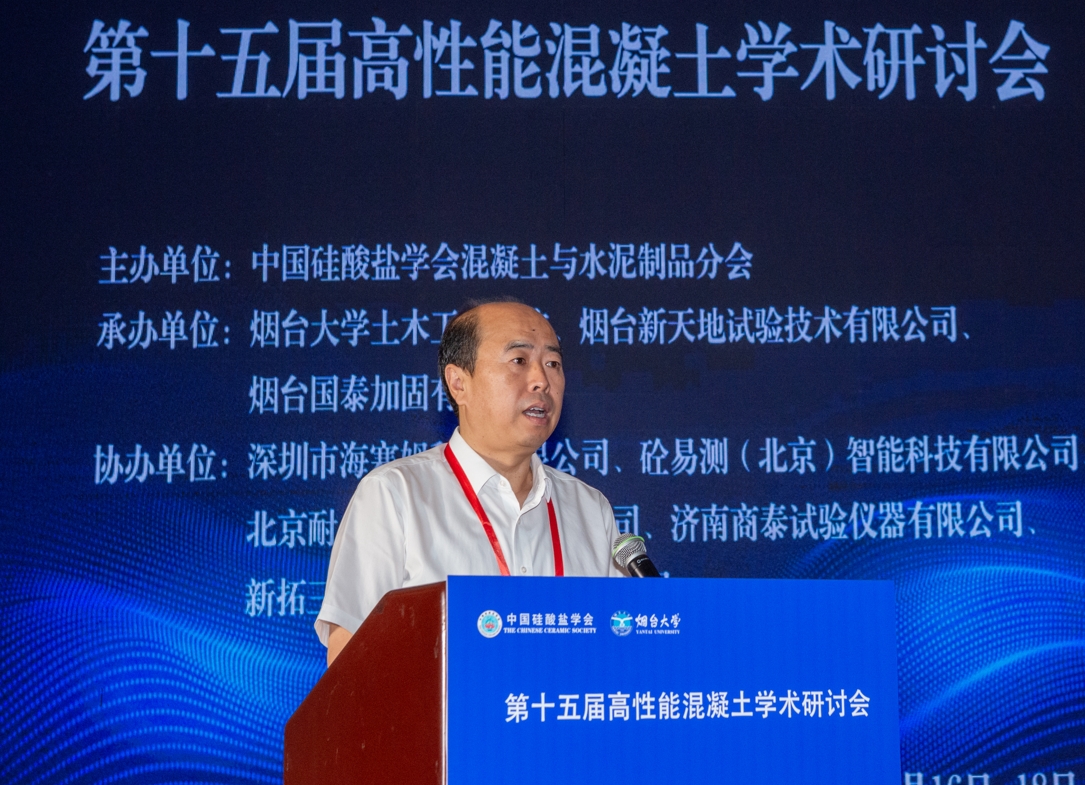 【本站訊】8月16日-18日,由中國硅酸鹽學會混凝土與水泥制品分會和煙臺大學聯合主辦、土木工程學院承辦的第十五屆高性能混凝土學術研討會在煙舉辦。黨委副書記、校長郝曙光,中國硅酸鹽學會混凝土與水泥制品分會副理事長、秘書長吳浩出席開幕式并致辭。來自清華大學、同濟大學、浙江大學、哈爾濱工業大學等59所高校和中國建筑科學研究院有限公司、中冶集團、中建西部建設股份有限公司等26家行業相關單位220余名專家學者參加會議。開幕式由土木工程學院院長逯靜洲主持。