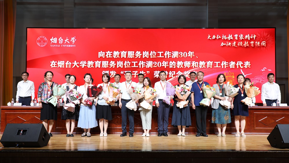 【本站訊】9月10日下午,煙臺大學在弘毅廳舉行2024年慶祝教師節(jié)大會,隆重表彰學校2023-2024學年省級及以上榮譽獲獎?wù)吆?024年度煙臺大學榮譽體系獲獎教職工,向在煙臺大學服務(wù)滿40年的老同志頒授“光榮在校40年”紀念章,向在教育服務(wù)崗位辛勤耕耘滿30年和20年的教師和教育工作者頒授“孺子牛”榮譽紀念獎?wù)拢M織新入職教師進行集體入職宣誓。黨委書記盧國強代表學校黨委向全體教職員工致以節(jié)日的問候,并發(fā)表題為《大力弘揚教育家精神,為加快建成特色鮮明、開放創(chuàng)新、國內(nèi)外具有重要影響力的高水平大學貢獻力量》的講話,黨委副書記、校長郝曙光主持慶祝大會,學校黨委領(lǐng)導(dǎo)班子成員王強、白青、馮素玲、姚昌、張獻勇、王麗、初磊、劉偉、楊眾暉出席。