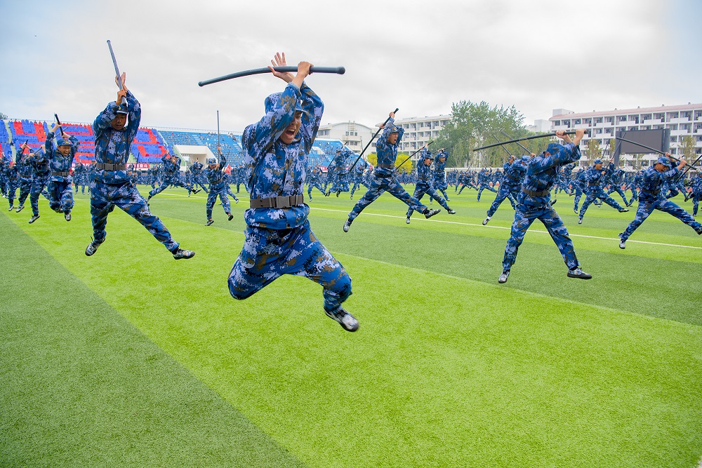開學(xué)典禮在雄壯的國(guó)歌聲中拉開序幕。“聽吧,新征程號(hào)角吹響!”看臺(tái)上,一千五百余名新生熱血唱響《強(qiáng)軍戰(zhàn)歌》,鏗鏘的旋律與激昂的歌聲交織奏響煙大學(xué)子的青春強(qiáng)音。綠茵場(chǎng)上,應(yīng)急棍術(shù)表演和女子匕首操表演輪番上場(chǎng),一招一式堅(jiān)定有力,揮臂踢腿英姿颯爽,嘹亮口號(hào)響徹不斷,生生不息的青春活力將全場(chǎng)氣氛瞬間點(diǎn)燃。