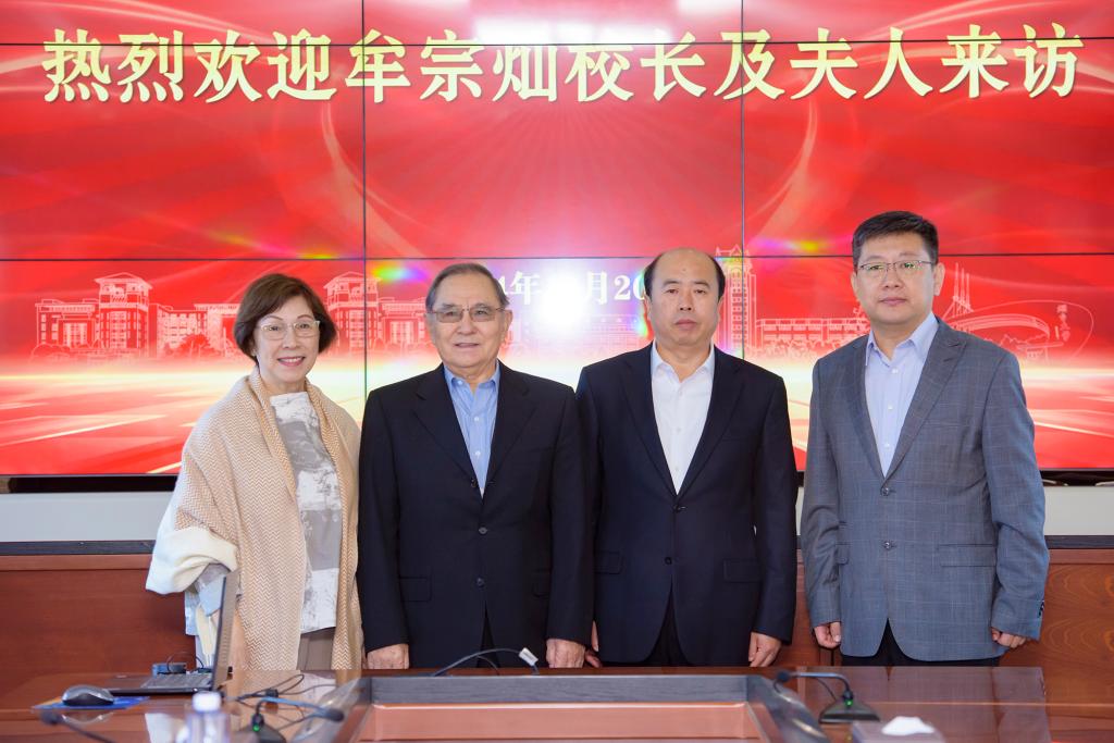 在會(huì)見牟宗燦時(shí),郝曙光首先代表全校師生感謝牟宗燦先生與夫人專程從美國回來參加煙臺(tái)大學(xué)建校40周年系列活動(dòng),感謝先生對(duì)煙臺(tái)大學(xué)的關(guān)注和支持,感謝牟宗燦先生擔(dān)任校長時(shí)推動(dòng)了東華大學(xué)、世新大學(xué)與煙臺(tái)大學(xué)建立友好合作關(guān)系,為我校對(duì)臺(tái)工作良好局面打下了堅(jiān)實(shí)的基礎(chǔ)。郝曙光表示,希望牟宗燦先生繼續(xù)關(guān)心關(guān)注煙臺(tái)大學(xué)的發(fā)展,支持學(xué)校與臺(tái)灣地區(qū)的高等教育合作,并祝愿兩位老人身體健康、生活幸福。