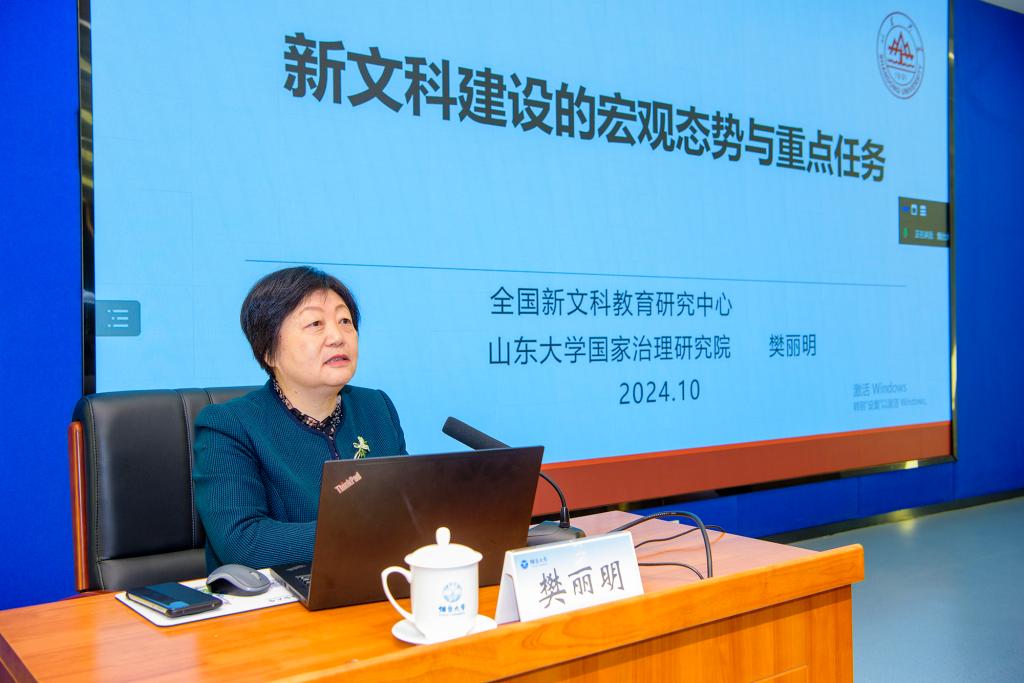 研討會上,樊麗明作《新文科建設的宏觀態勢與重點任務》主題報告。報告深入分析了新文科建設的宏觀態勢,解答了“什么是新文科”“為什么建設新文科”“怎樣建設新文科”等核心問題,介紹了全國各高校推動新文科實踐創新和理論創新的重要舉措和標志性成果。她以教育強國建設為目標,基于當前科技革命形勢和社會發展需求,闡明了未來新文科建設的重點任務,并提出了構建中國自主人才培養體系的路徑和方法。