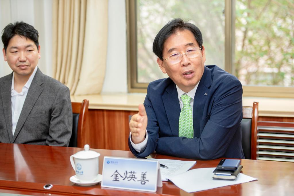 王洪波對(duì)金煐善院長一行到訪煙臺(tái)大學(xué)表示歡迎,并介紹了學(xué)校近年來的發(fā)展成就、對(duì)韓高等教育交流合作情況。他表示,學(xué)校積極開展對(duì)外學(xué)術(shù)交流,對(duì)韓交流成果尤為顯著,學(xué)校與全南研究院保持長期友好互動(dòng),難能可貴,希望雙方進(jìn)一步深化合作,積極推動(dòng)聯(lián)合科研,共同申報(bào)合作項(xiàng)目,搭建高層次合作平臺(tái)。