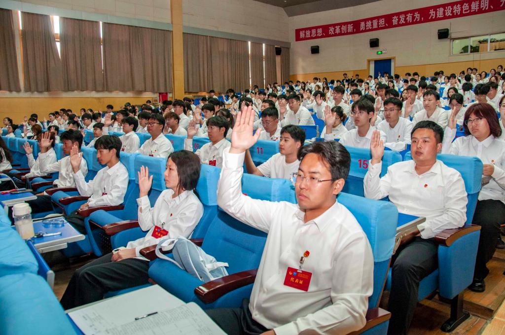 黨委(學(xué)校)辦公室、學(xué)生工作處、教務(wù)處、研究生處、校工會、校團委相關(guān)負(fù)責(zé)人,往屆校團委書記代表,二級學(xué)院黨組織書記及大會代表300余人參加會議。
