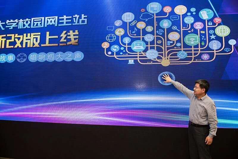 在10月2日下午舉行的煙臺大學輿論宣傳工作會上,校黨委書記張偉啟動校園網主站上線按鈕。