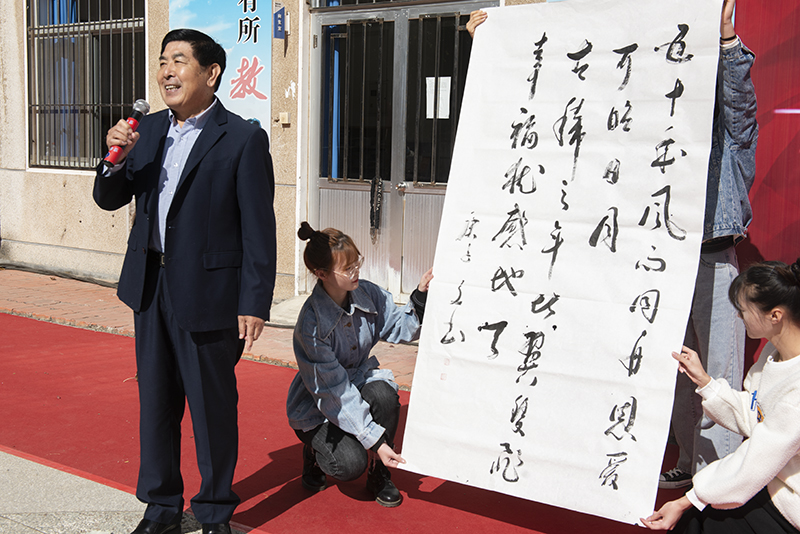山東省老教協副會長、煙臺大學老教協會長于文書教授現場揮毫潑墨——“五十年風雨同舟恩愛可昭日月,古稀年比翼雙飛幸福猶感地天”。部分學院在職教師、學生代表以及煙大幼兒園的小朋友們也通過視頻錄制和現場表演的形式給金婚老教師們送上美好祝福。