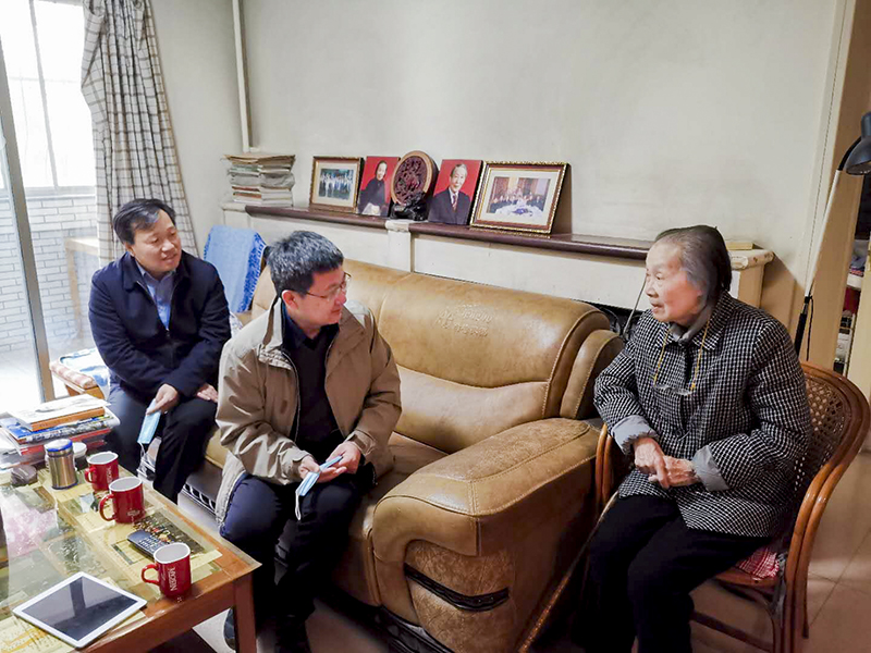 張偉、郭善利一行看望了煙臺(tái)大學(xué)首任黨委書(shū)記、常務(wù)副校長(zhǎng)杜建寰同志和首任校長(zhǎng)沈克琦同志夫人張星。學(xué)校領(lǐng)導(dǎo)仔細(xì)詢問(wèn)了老同志的身體狀況并匯報(bào)了學(xué)校近期的各項(xiàng)工作和取得的主要成績(jī),并就編制學(xué)校“十四五”發(fā)展規(guī)劃等事宜虛心求教。學(xué)校領(lǐng)導(dǎo)表示,飲水思源,憶苦思甜。今天,煙臺(tái)大學(xué)高質(zhì)量發(fā)展所取得的階段性成績(jī),凝結(jié)著一代代援建工作者們的無(wú)限心血,凝結(jié)著一代代煙大人的團(tuán)結(jié)拼搏。煙臺(tái)大學(xué)始終牢記北京大學(xué)、清華大學(xué)援建煙臺(tái)大學(xué)工作者的悉心指導(dǎo)和殷切期望,始終牢記服務(wù)區(qū)域經(jīng)濟(jì)社會(huì)發(fā)展和建設(shè)高水平大學(xué)的初心與使命,注重繼承、發(fā)揚(yáng)援建工作者們艱苦奮斗、無(wú)私奉獻(xiàn)的寶貴精神,努力開(kāi)創(chuàng)各項(xiàng)工作的新局面,持續(xù)提升學(xué)校綜合競(jìng)爭(zhēng)實(shí)力。