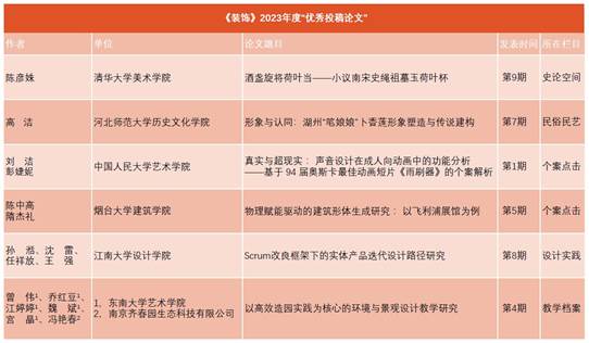 近日,《裝飾》雜志評選出2023年度“優秀投稿論文”,建筑學院陳中高、隋杰禮老師的論文《物理賦能驅動的建筑形體生成研究 :以飛利浦展館為例》入選。本次評選以2023年《裝飾》雜志發表的投稿論文為對象,主要集中在《史論空間》《民俗民藝》《個案點擊》《設計實踐》《教學檔案》五個欄目。經過欄目編輯的嚴格審定與投票討論,從數百篇已發表的論文中精選出主題鮮明、觀點新穎、論據可靠、語言精煉、可讀性強,并有原創性的6篇佳作為“優秀投稿論文”。